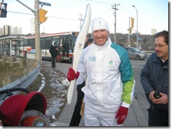So, we had a jog… followed by the mall… and home in time to see the Torch!! It turns out it was former Olympian Brian Stemmle who was getting the torch right in front of me!  Photos?