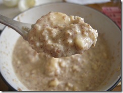 Today started out with oats (2), banana (2) & PB(2) with some wheat germ and flax seed (0)… followed by 2 egg whites (0)